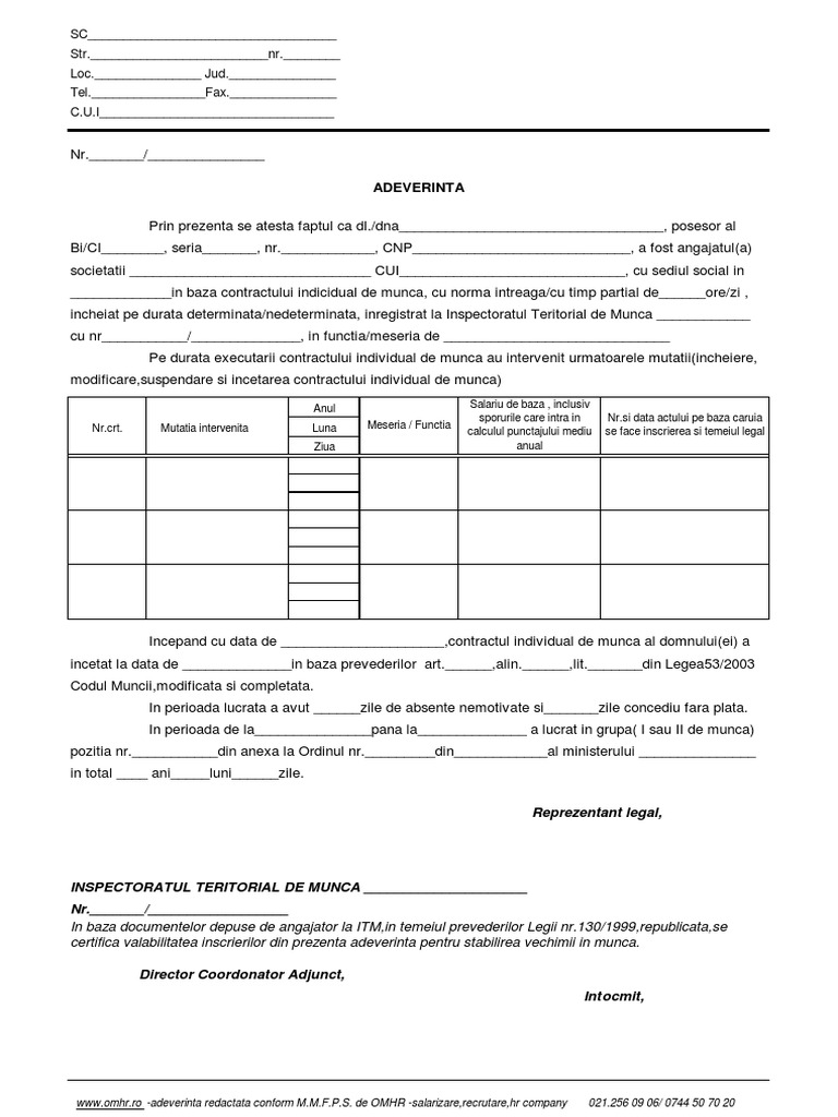 Inspectoratul teritorial de munca (itm) este autoritatea publica responsabila cu evidenta angajatilor din romania. 130/1999, republicata, se certifica valabilitatea inscrierilor din prezenta adeverinta, pentru stabilirea veghimii in munca. Adeverinta de vechime itm taxa eliberare adeverinta de vechime adeverinta in munca 2020 model adeverintamunca 2020.