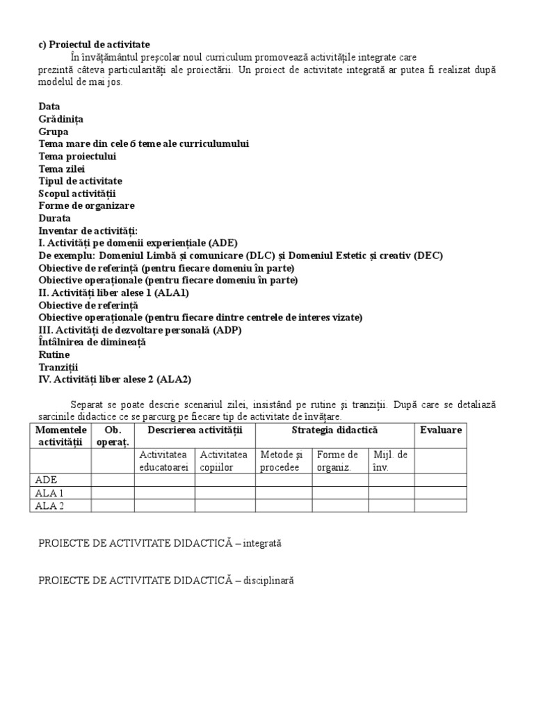 vizitati articolul complet aici : https://docplayer.fr/82378649-Cuprins-cuprins-2-proiectarea-didactica-si-management-european-in-spatiul-romanesc-5.html Revista invatamantului preuniversitar martie 2017. Ghid pentru cadrele didactice pentru invatamantul prescolar lucrarea cuprinde proiecte tematice care au la baza abordarea in maniera integrata a activitatilor didactice din gradinita o metoda moderna care presupune aplicarea noului curriculum pe baza celor sase teme anuale de studiu. Curriculumul pentru învăţământul preşcolar prezintă o abordare sistemică, în vederea asigurării: