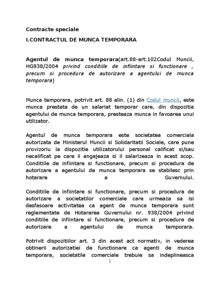 vizitati articolul complet aici : http://www.academia.edu/16632922/Contract_individual_de_munca • creşterea temporară a activităţii angajatorului. Discutam despre munca prin agent de munca temporara ca fiind munca prestata de un salariat temporar care a incheiat un contract de munca temporara cu un agent de munca. valabil la 29 mai 2019.